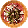 Gefüllt mit Ziegenkäse, serviert mit geräucherter Roter Beete und Balsamico-Dressing